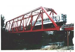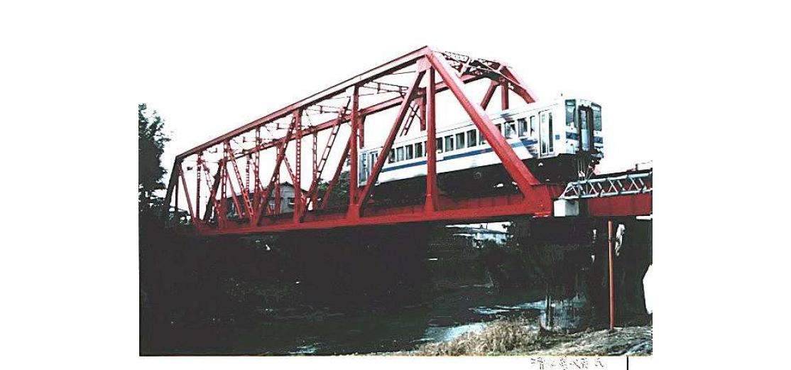 - (1)1953年の洪水災害の復旧工事で,支間46.8m,設計荷重E45のトラスが中央2格間の増設によって支間62.4m,KS15に改造され架設された.