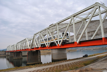 - (1)当初,鈑桁7連とプラットトラス3連で構成され,そのうち鈑桁4連は1987年頃にワーレントラス1連(支間長66.7m)に架け替えられた.