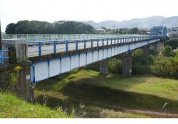 - (1)1961年改造(トラス橋に隣接した木橋を鈑桁に架替:橋長152m,幅員7.5m)