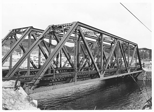 - (1)JR留萌本線の留萌以西が廃止された.従来ここには英国製200ftダブルワーレントラスを150ftに短縮改造したものが架けられていた.それが1952年製のワーレントラス(設計は1932年)に架け替えられた.