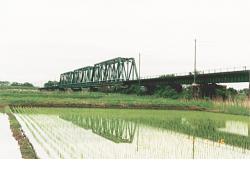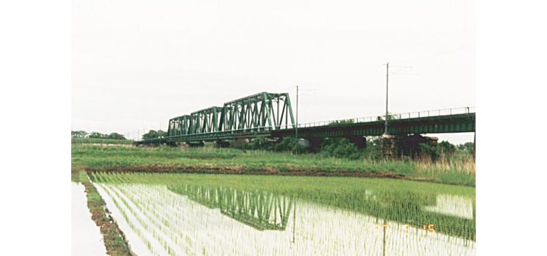 - (1)越後鉄道が建設した初代橋梁(旧橋)の桁は,東海道本線天竜川橋梁に架けられた200ftダブルワーレントラス9連であった.