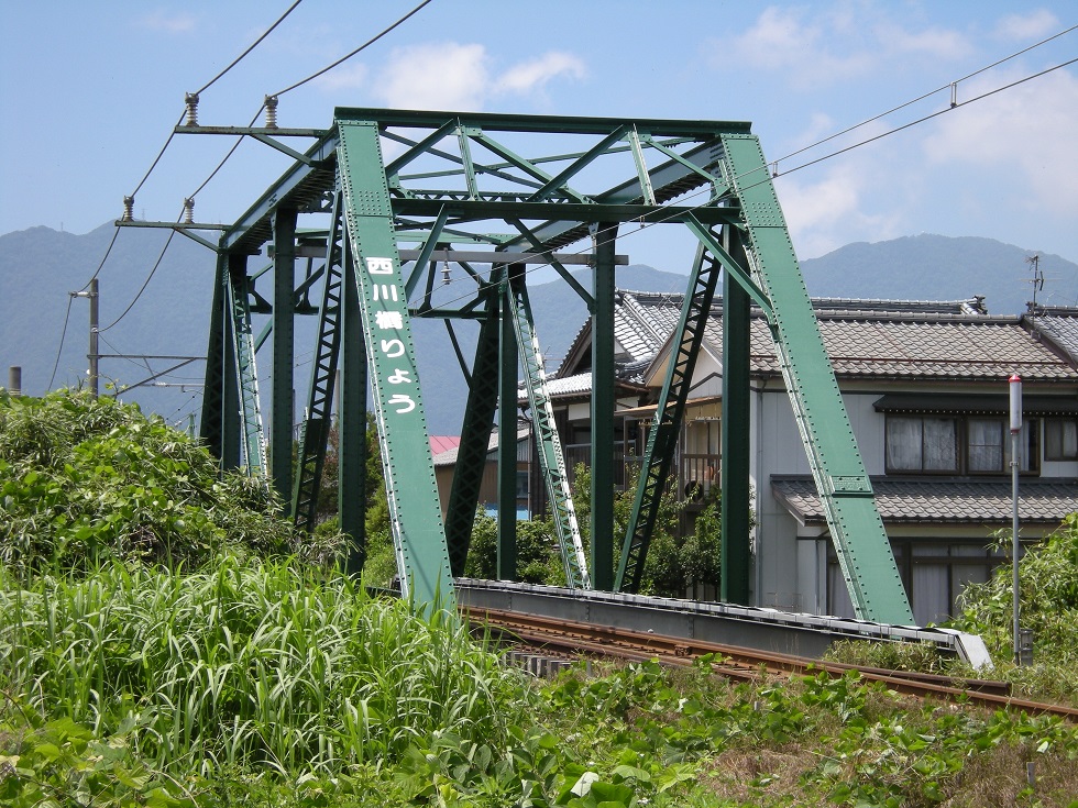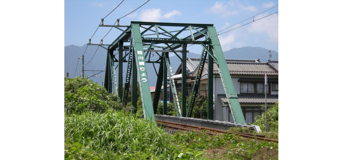 - (1)この橋は,武庫川橋梁として1898年に製作され,架設されたものを,中央格間を省いて短縮・改造され,1954年に現位置に転用された.