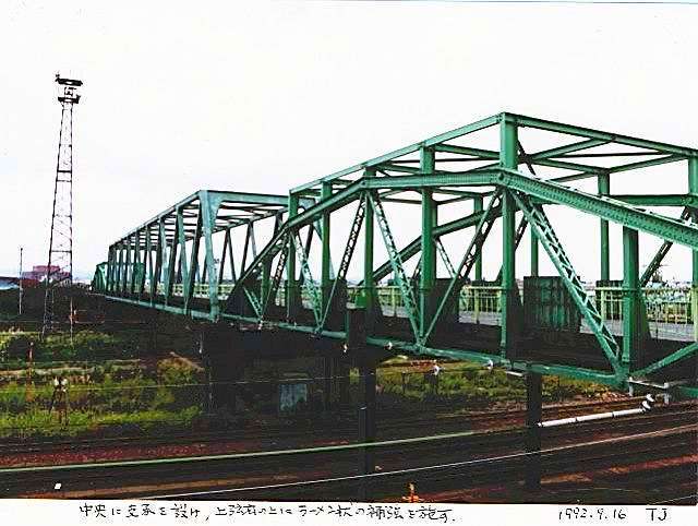 - (3)最初に架かっていた中央のダブルワーレントラスは,1964年に雪の重みで変形したため取り替えられた.
