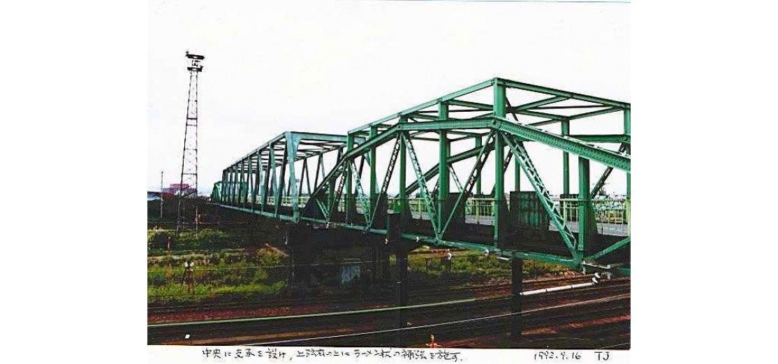 - (2)3連のうち,両側2連のボーストリングトラスはラーメンによる特殊な補強が施された.