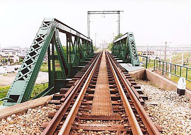 (1)信越本線犀川橋梁(下り線)から撤去した鉄道院設計の桁を改造して,1964年に現位置へ架設した.