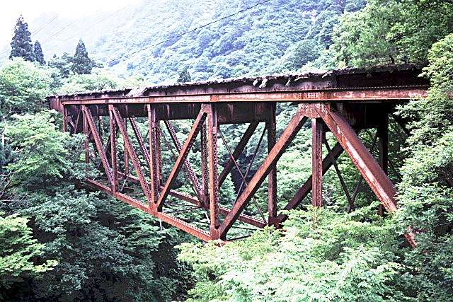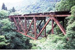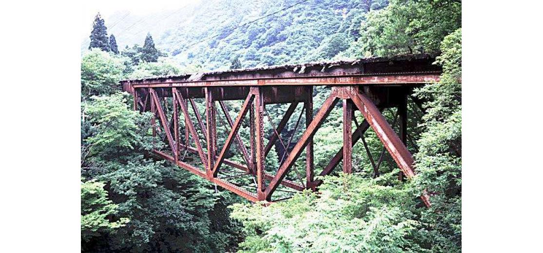 - (1)官営八幡製鉄所専用鉄道(鉱石運搬用)として,新発田-赤谷鉱山間が1919年7月に着工され,本橋梁は1922年12月竣工(鉄道省長岡建設事務所が担当)した.