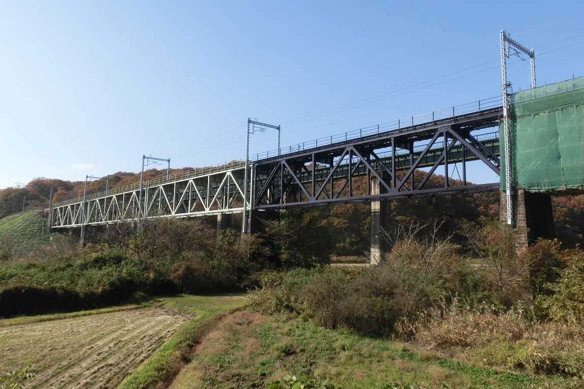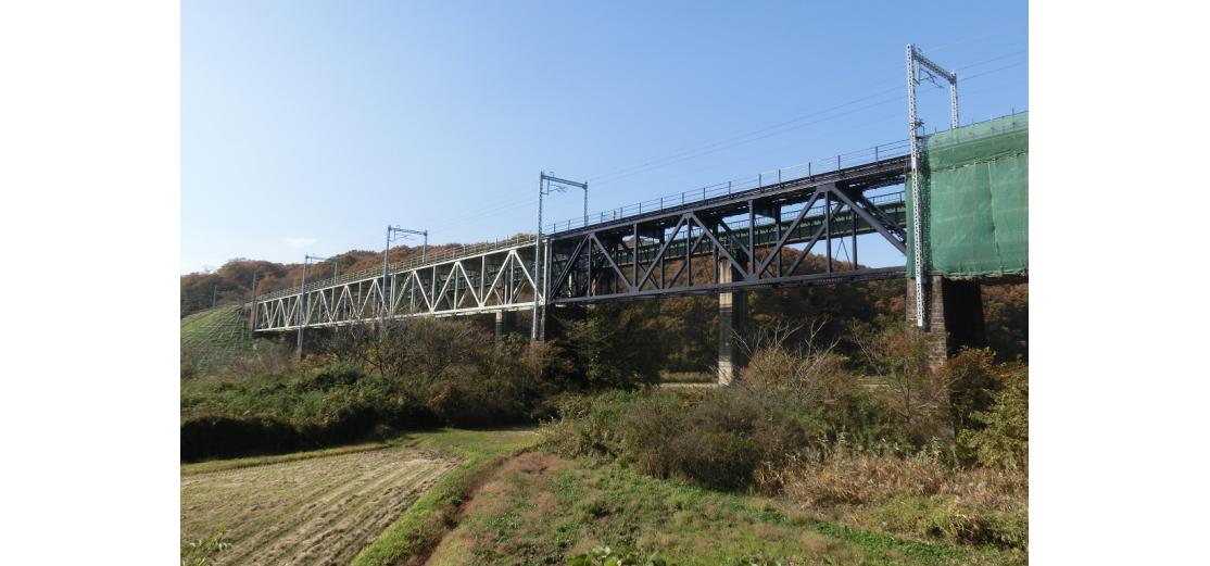 - (2)那珂川橋梁(プラットトラス)と同時期の架設であるが,黒川橋梁はワーレントラスに変更されている.