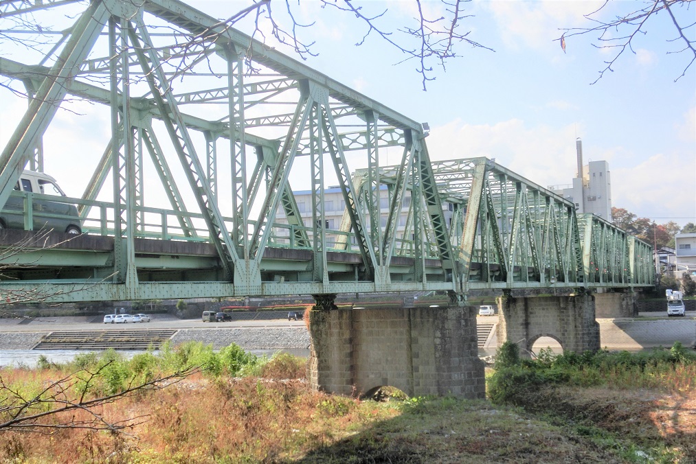 - (2)下路式4連トラスの端整でリズム感を持った橋で,特に塔形の御影石の親柱は,旧黒羽城下への関所門的な歴史を感じさせる.