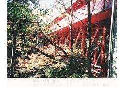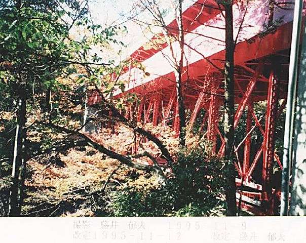 - (1)1975年に両外側に鋼箱桁を架設し旧トラスを外側から抱え込む工法で補強された.