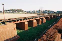 - (2)軌道敷が遊歩道化され,その中の拱渠は4重アーチ.