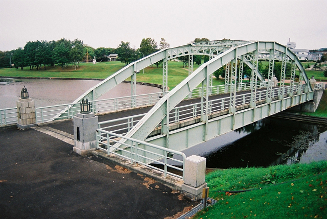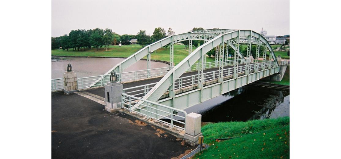 - (1)千歳川流域の治水と開発を象徴し田園風景に映える円形アーチが地元で愛され,1995年に移設され保存となった.移設時にリベットの一部はボルトに替えられた.