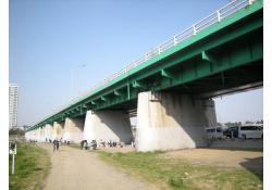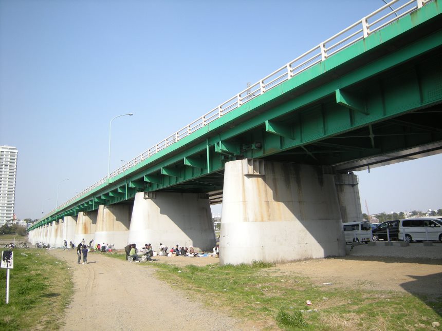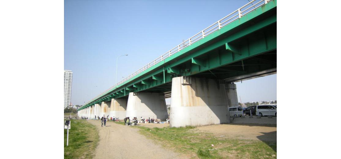 (2)林立する2柱式の橋脚は耐震補強で喪失した.