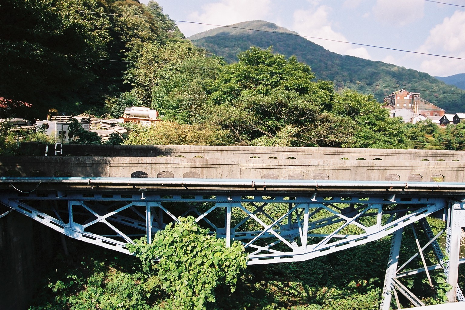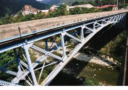 - (1)2径間のうち右岸側の一連は,下凸の曲弦トラス橋である.