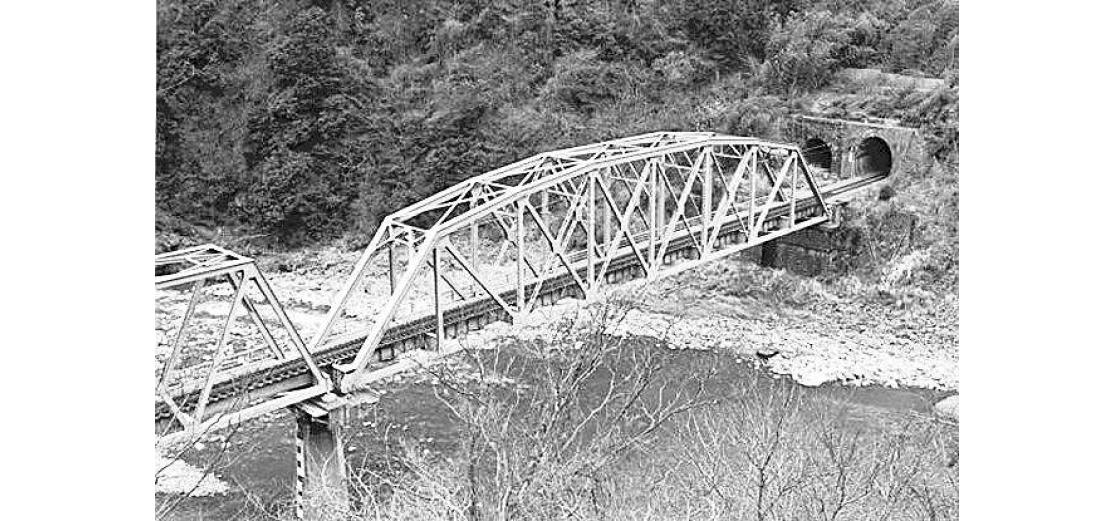 - (1)本橋の第2連は,天竜川橋梁旧下り線(1914年製作)から1973年に現位置へ移設したものである.