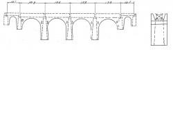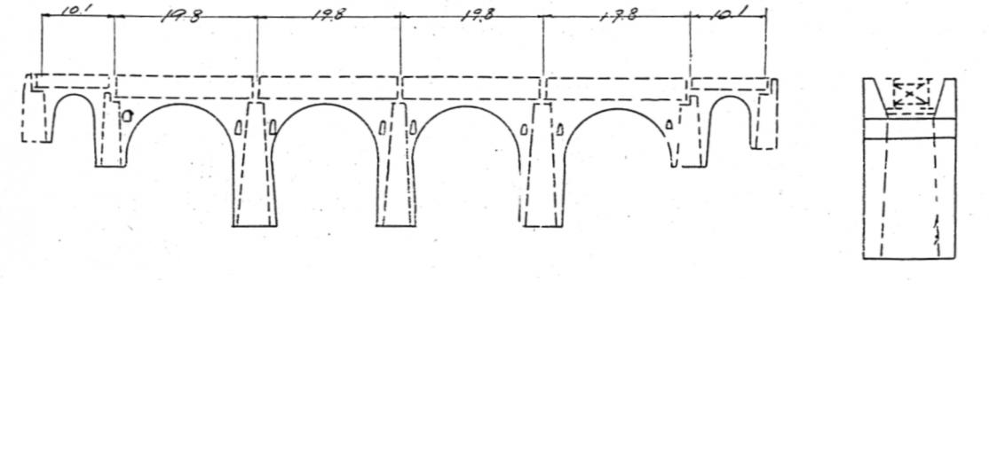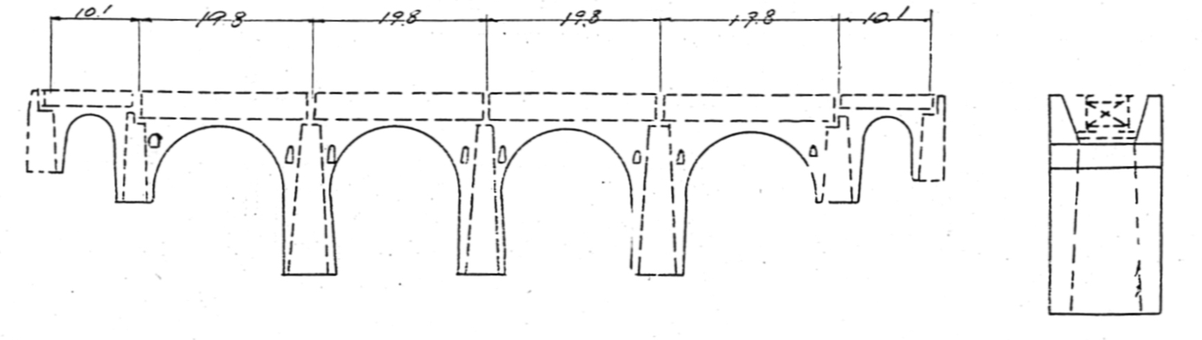 - (1)橋脚中心線からずれた位置に2つの穴があり,鋼鈑桁を橋脚ごとRCアーチに変えた経緯がわかる.