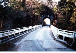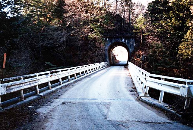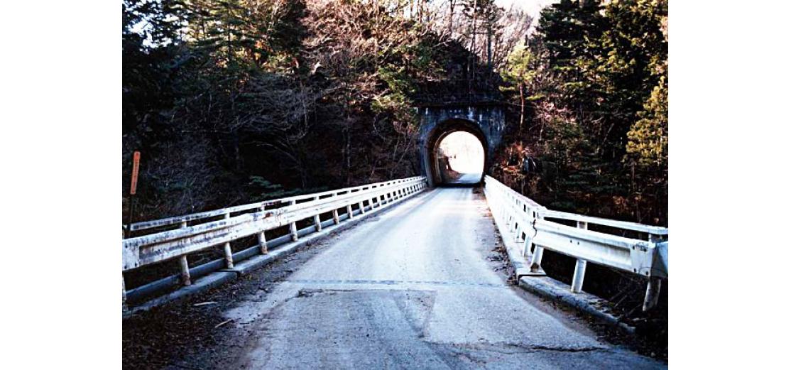 - (1)1975年に王滝森林鉄道が廃止された後,線路敷を林道に改築した.