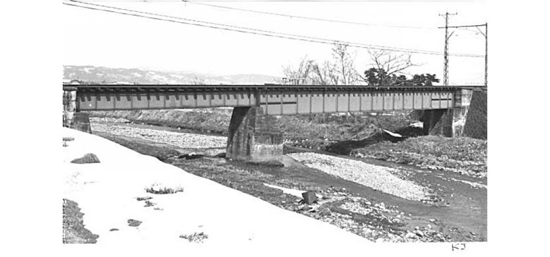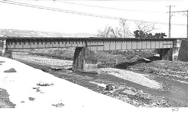 - (1)2径間目は,作30年式80ftの短縮形である.原桁のままなのか河東鉄道に転用するとき改造したのかは不明である.英国クリーブランド社の銘板が付いている.