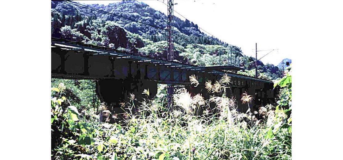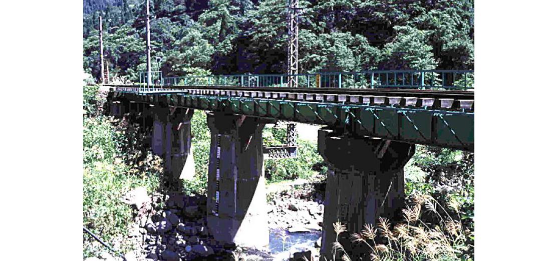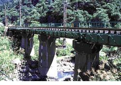 - (2)土木遺産の親さわ橋(下路式RCアーチ道路橋)と並行してかけられている.