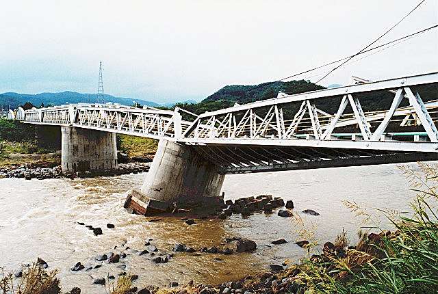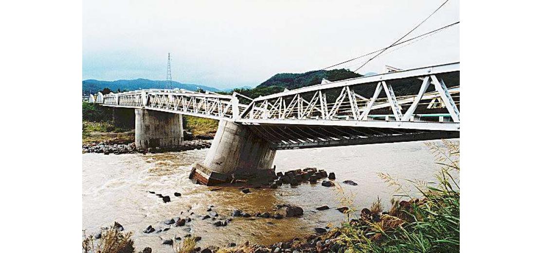 - (4)2001年9月水害により第1橋脚が傾斜.
