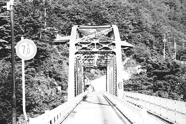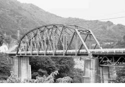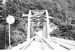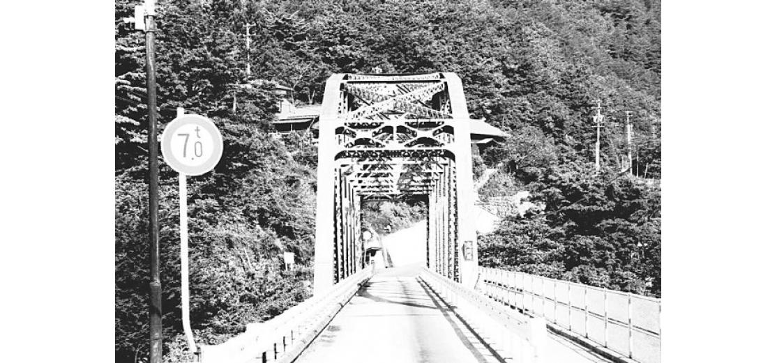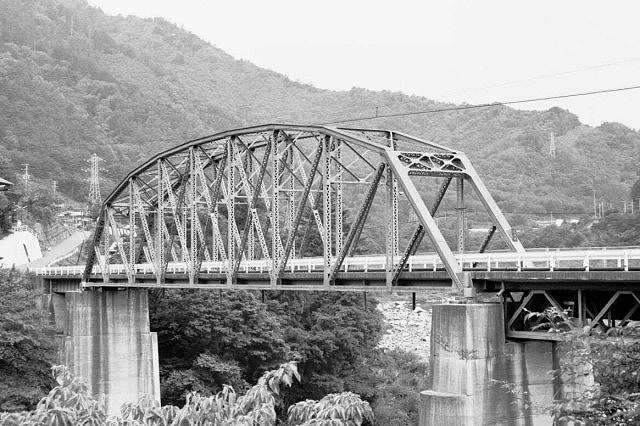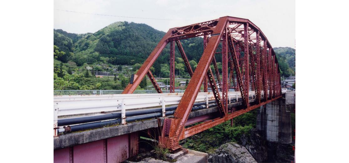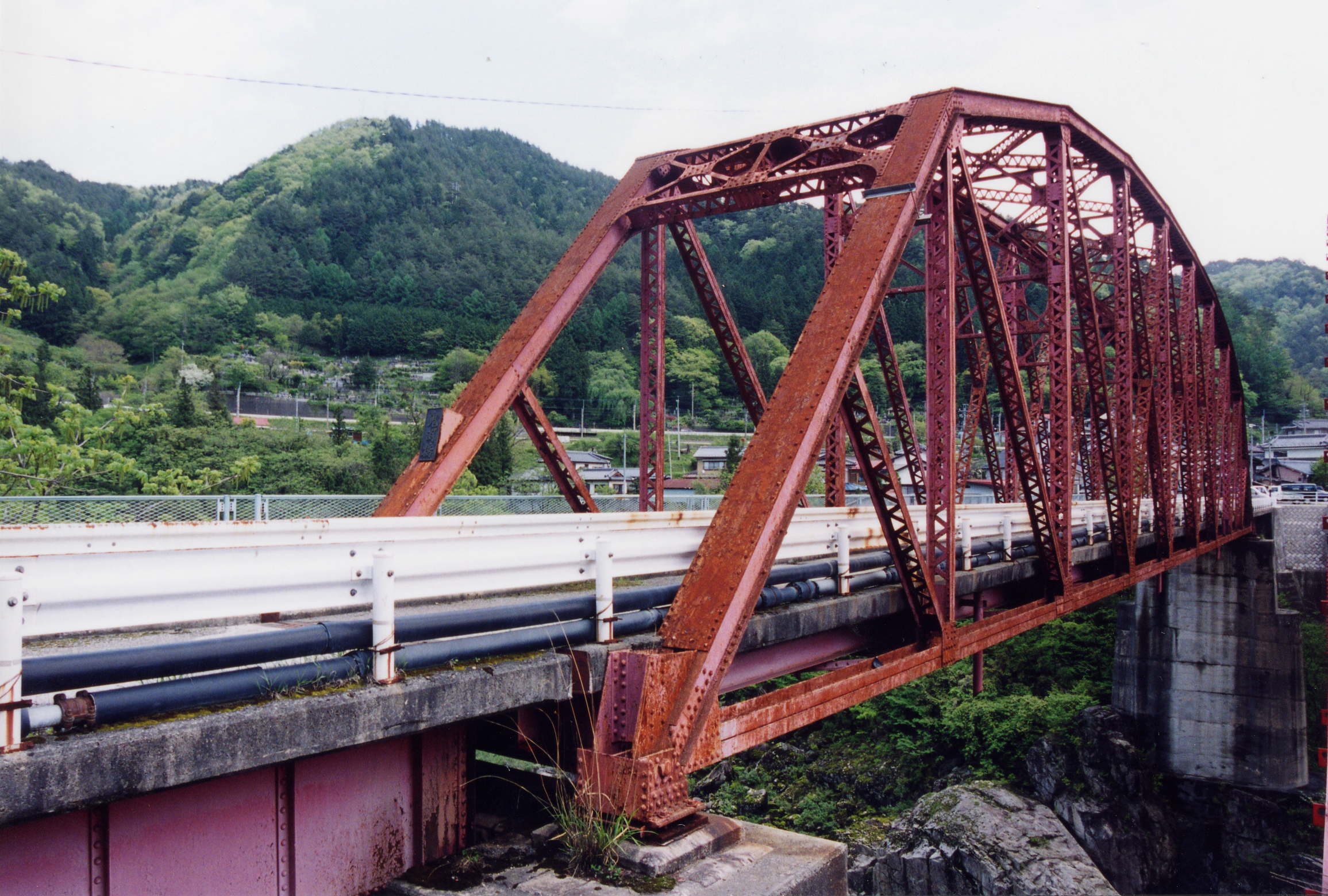 - (1)1913(大正2)年竣工の小川森林鉄道(のちの王滝森林鉄道)の木曽川橋梁を鉄道廃止(1975)後,林道用に改築したものである.