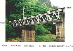 - (1)単純上路トラスを,1948年に桁高の低い2径間連続トラスに改造.
