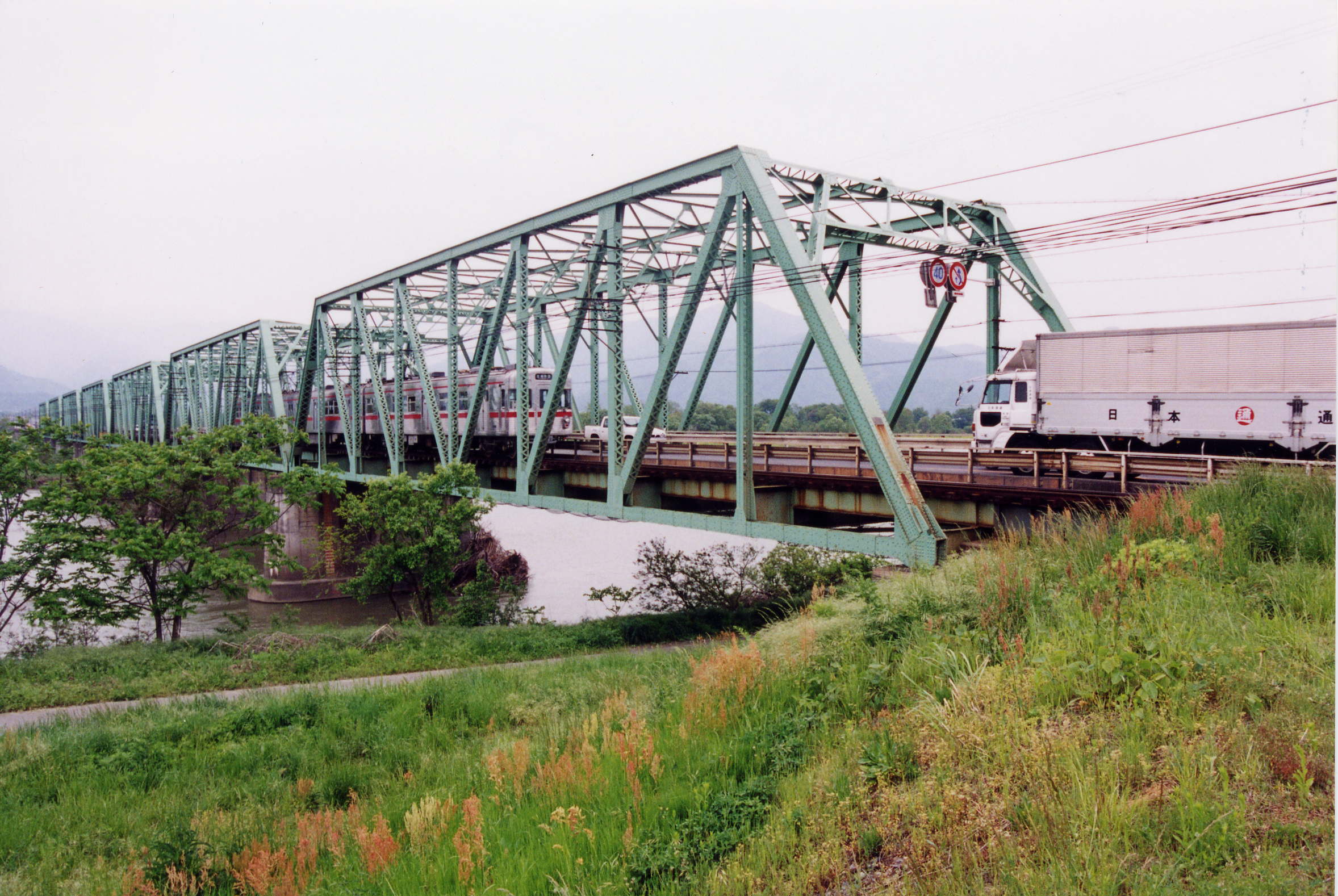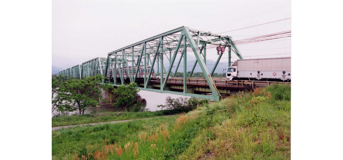 - (1)道路と鉄道(長野電鉄)の併用橋であった.