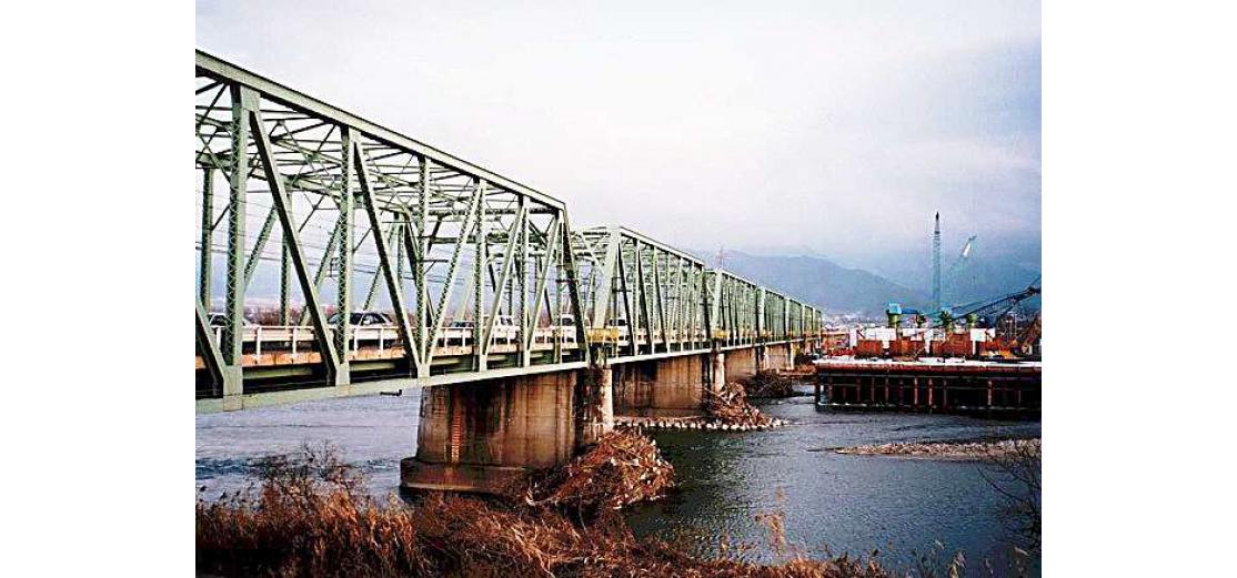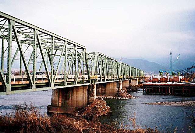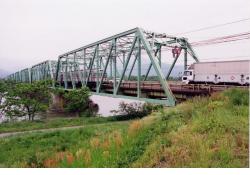 - (2)道路が上流側,単線鉄道が下流側に配置され,並列しており,トラス主構の部材断面は道路側と鉄道側で異なっていた.