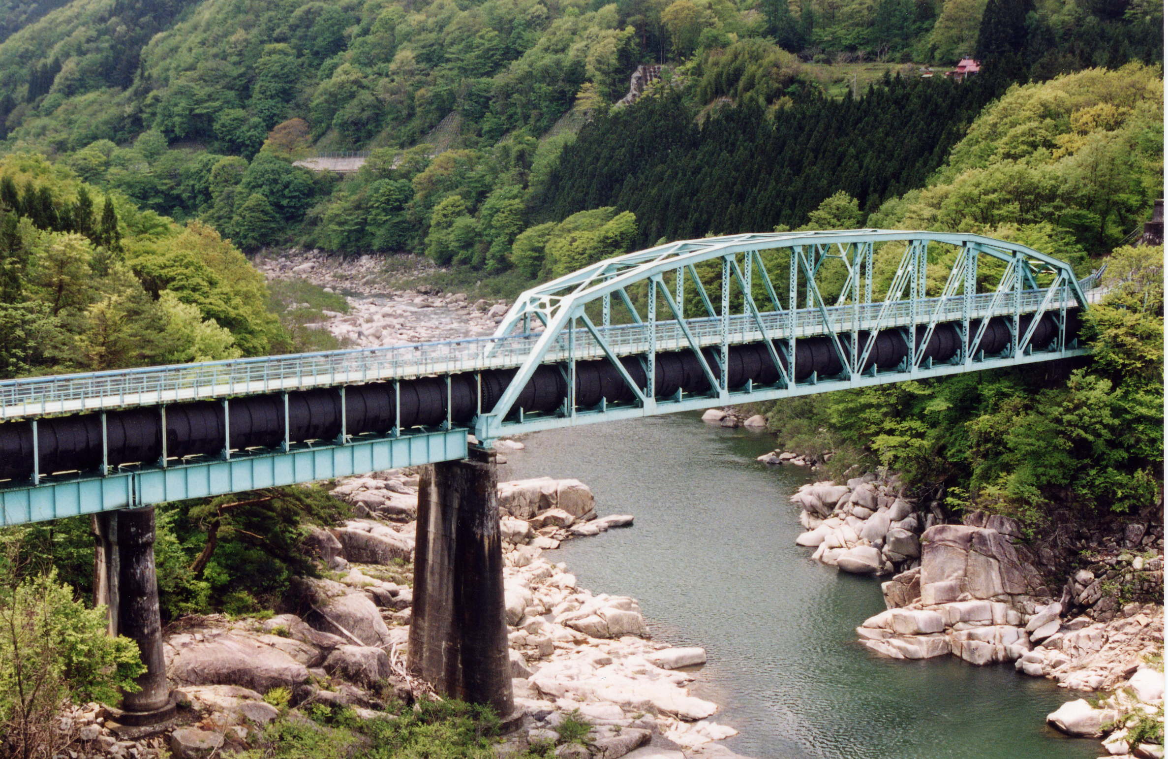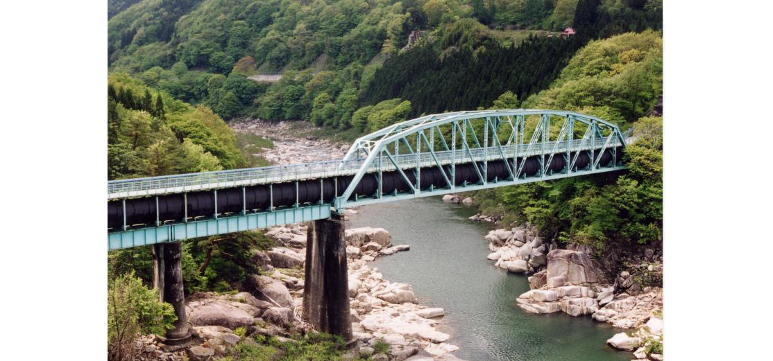 - (2)送水管の上が鉄板床の道路橋(町道)となっている.