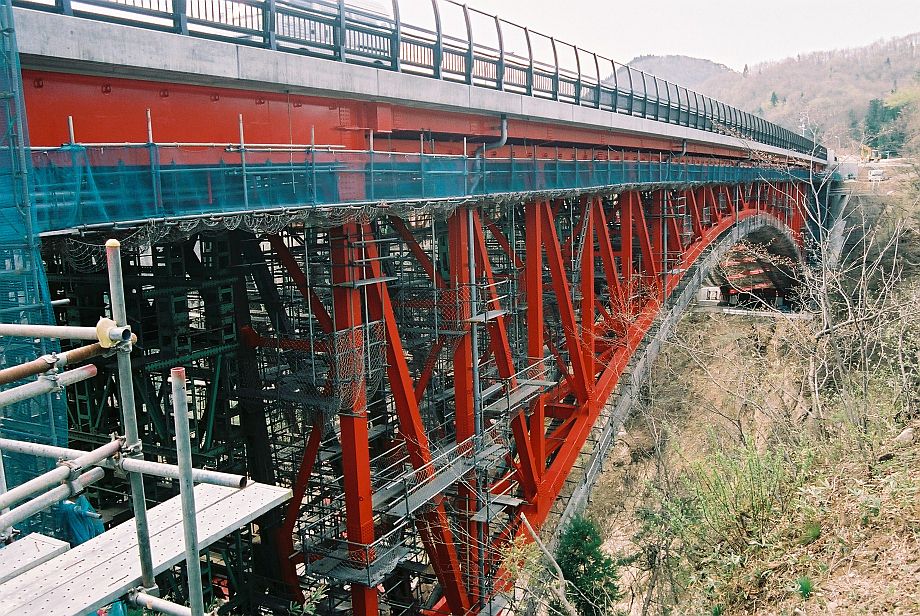 - (2)1972年,歩道添架(一面トラス,幅員2m)