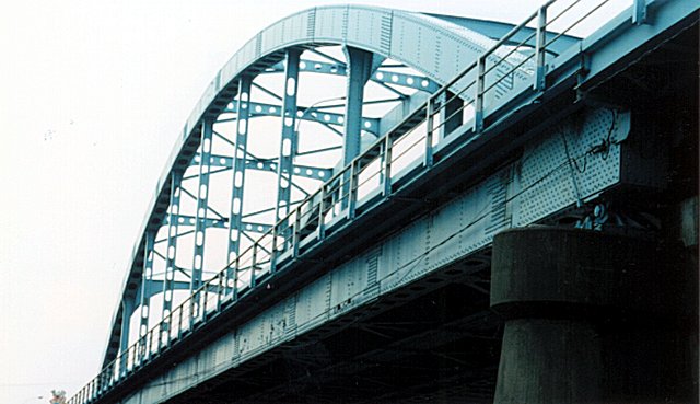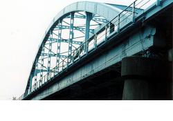 - (2)現在では並行して下流側に下路トラスの歩道橋が架設されている.