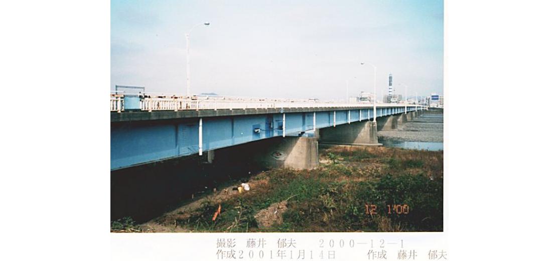 - (1)1992(平成4)年下流側に歩道(連続鈑桁)を添加.
