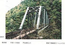 - (2)橋桁は鉄道省の設計図面によって製作されている.トラス桁の銘板に「昭和拾壱年十二月・三菱重工業株式会社・神戸造船所製作・三信鉄道株式会社」となっている.