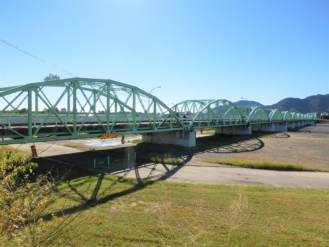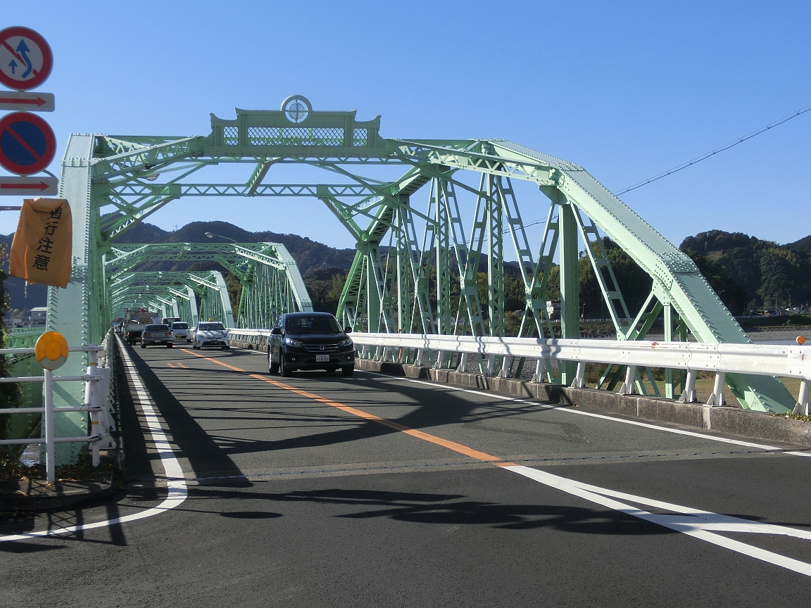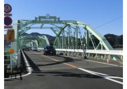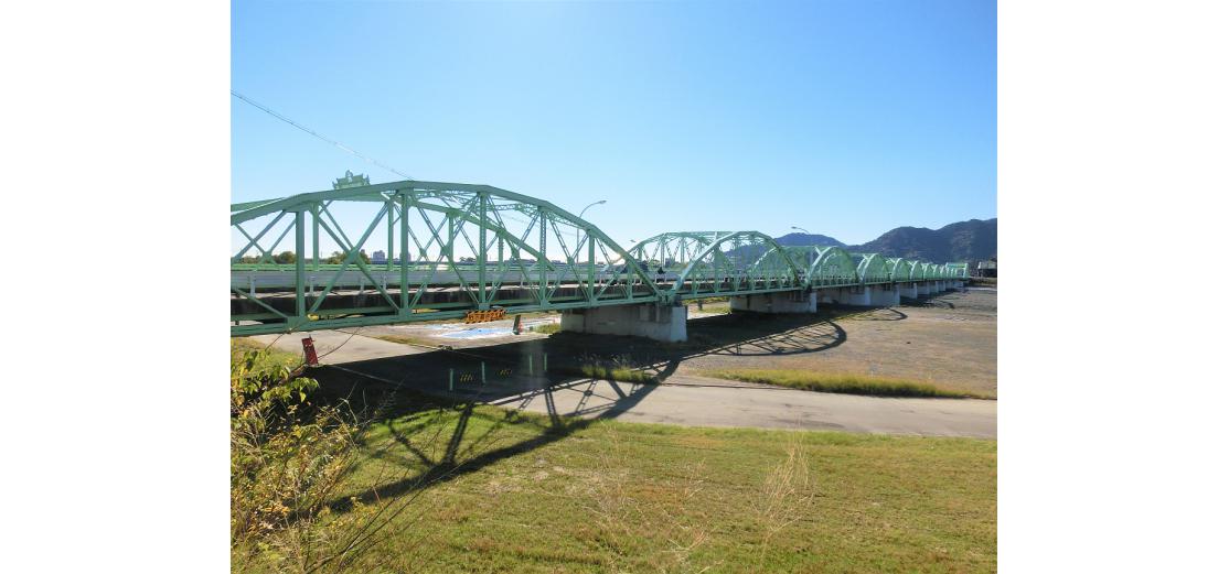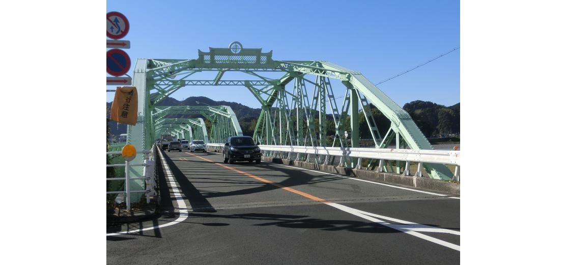- (2)ユニークな球形飾りのある橋門を持つなど,優美な姿を今日に残している大正期における最大級のトラス橋.