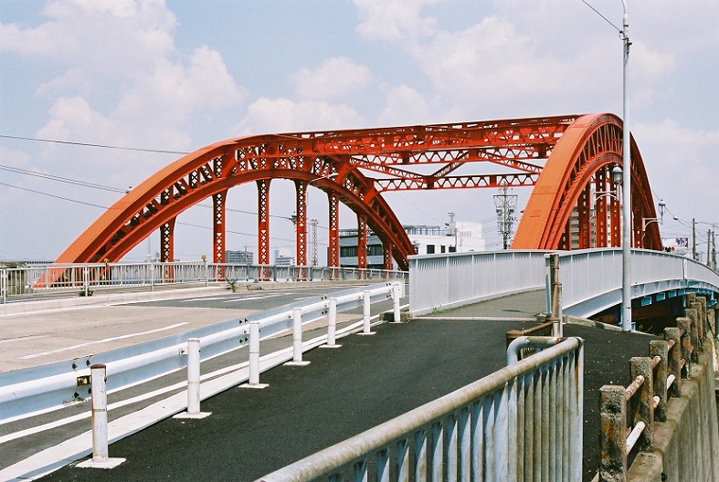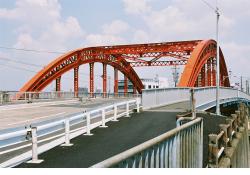 - (3)2013年から耐震工事と拡幅工事(箱桁の新設)が行われている(2019年全面開通予定).