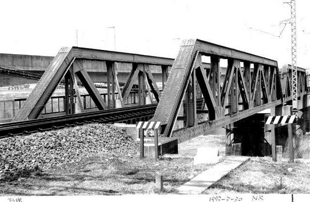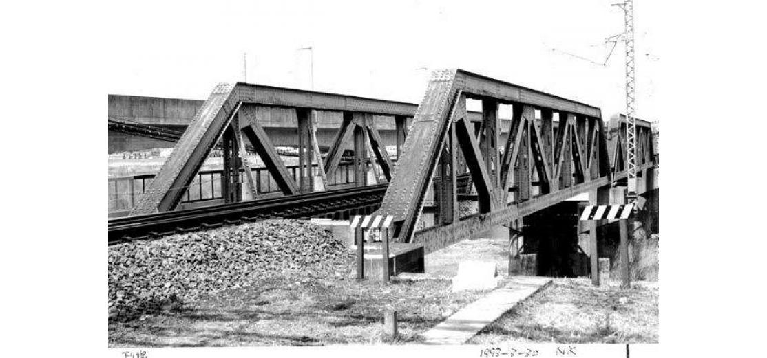 - (1)ポニーワーレントラスが上下線に各7連+避溢橋1連からなる橋であったが,建設省の河川改修事業の一環として,1996年新橋が別線で完成し役目を終えた.