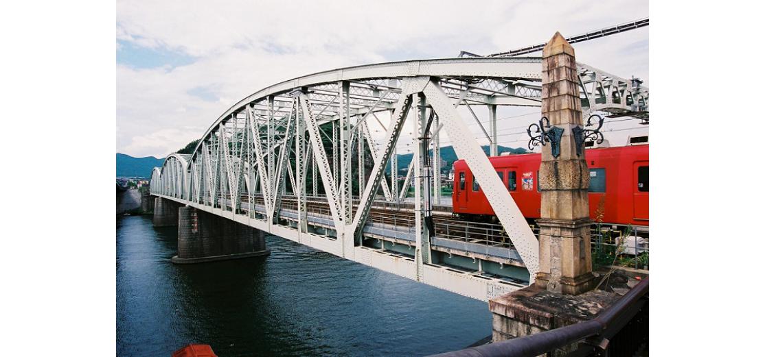 - (2)橋門構が垂直になった曲弦ワーレントラスの複線鉄道橋は稀(木曽川橋梁と同じ).
