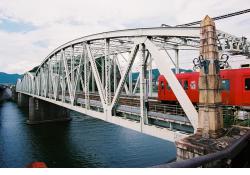 - (1)2000年に道路橋が併設され,県道との併用橋から鉄道専用橋となる.