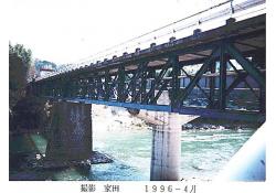 - (2)1996年に平行して新橋を架設(橋長78.7m,幅員4+1.2m,単純鈑桁,支間長19.4m).