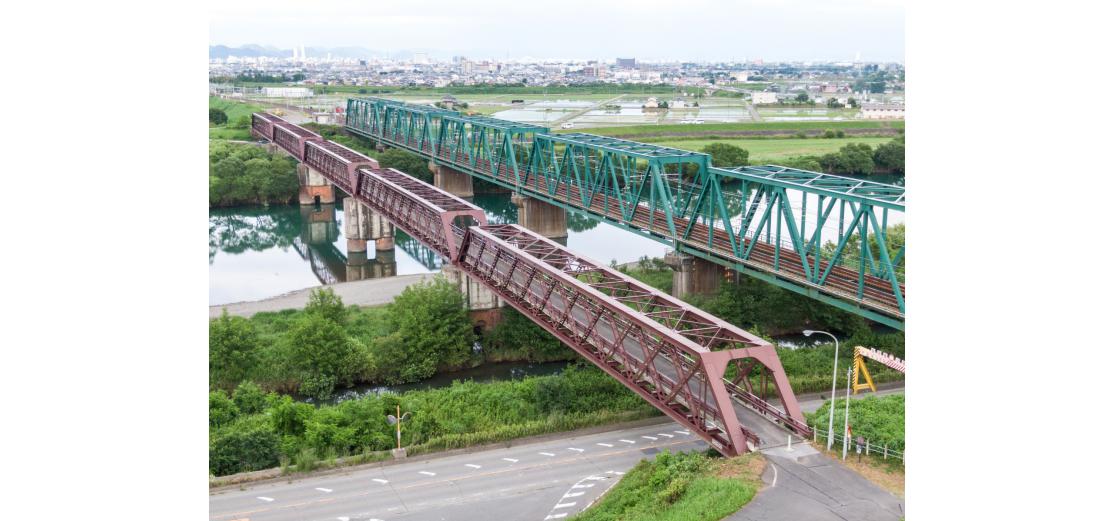 - (1)1908年に東海道線複線化に伴い,旧揖斐川橋梁が道路橋に転用.
