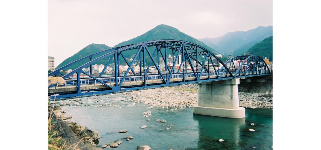 - (1)上弦材が曲線になっている特徴がある(東雲橋・藤浪橋と同一).