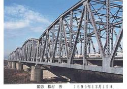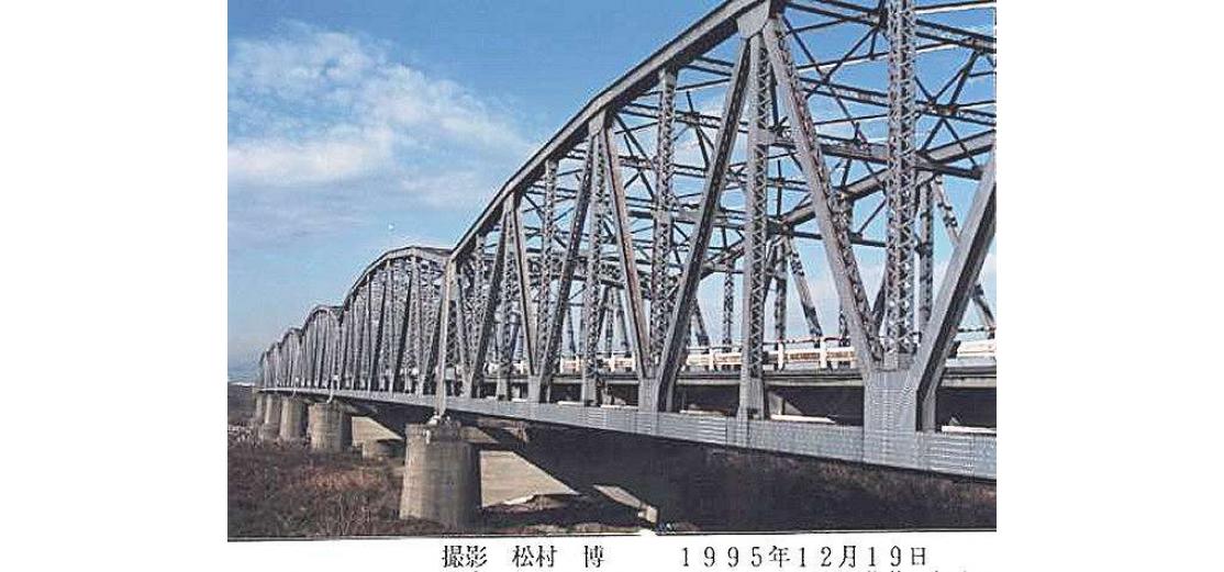 - (1)鉄道併用橋として計画されたため部材が重厚でリベットも多い.
