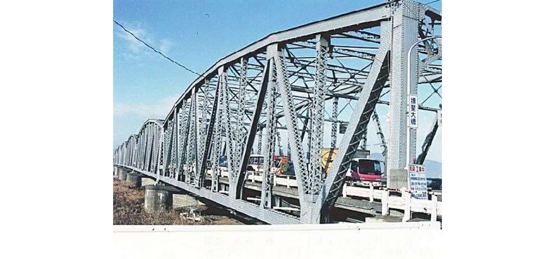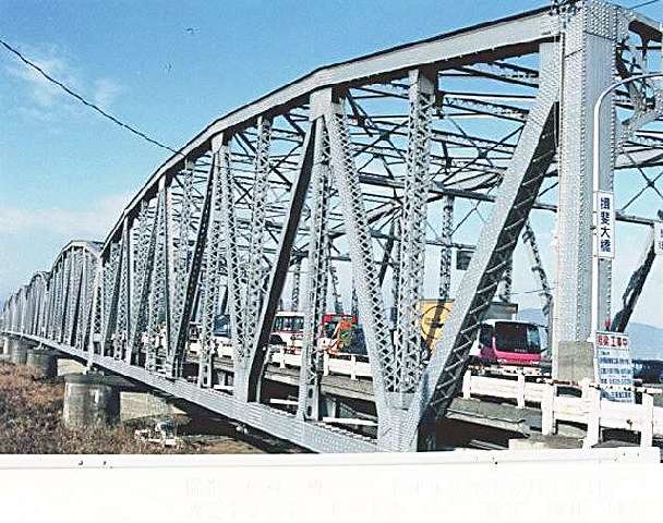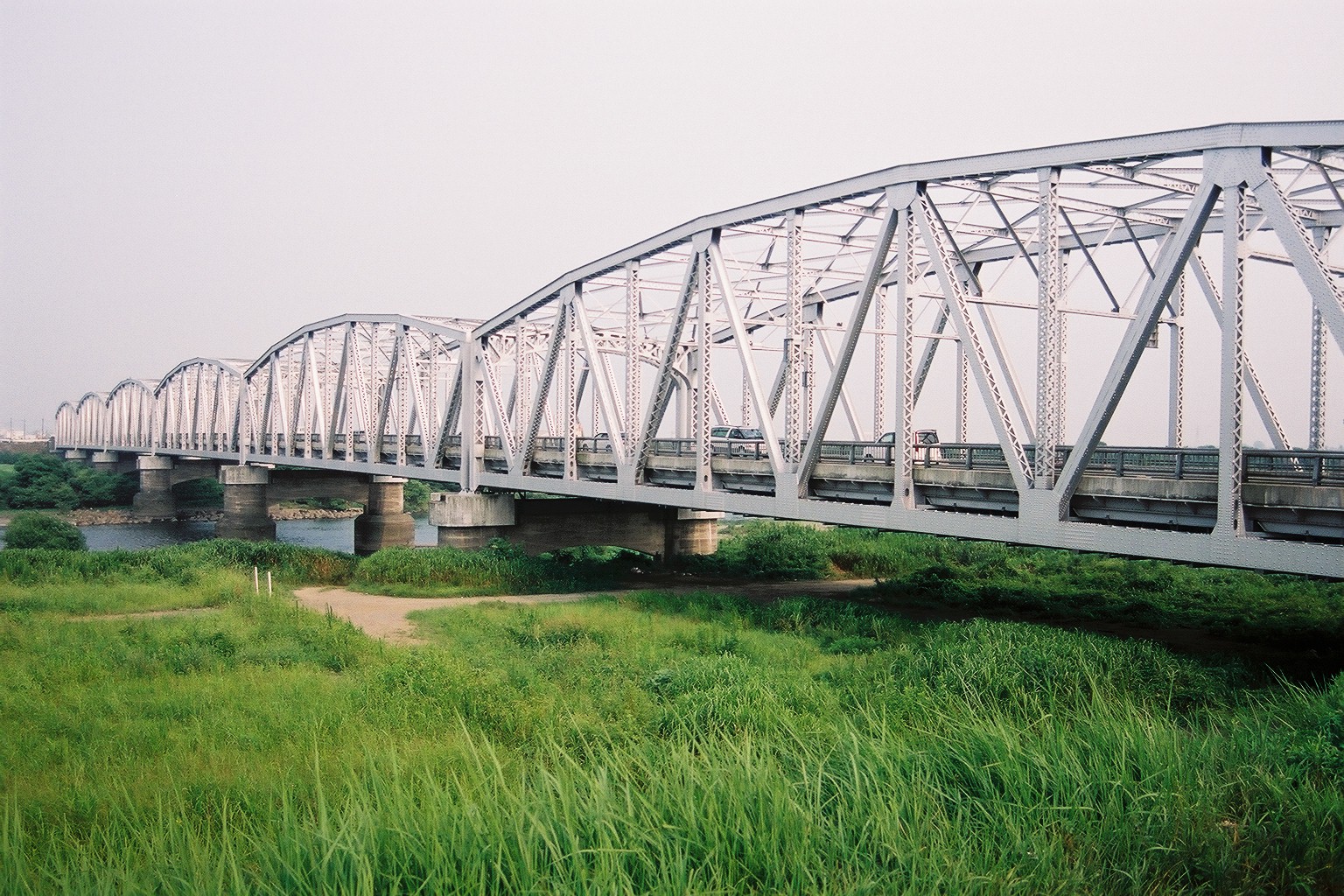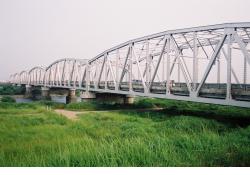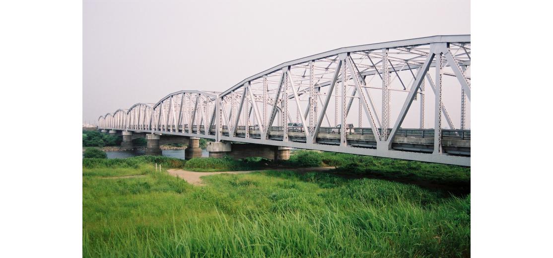 - (1)鉄道併用橋として計画されたため部材が重厚でリベットも多い.