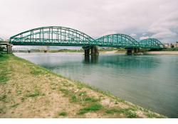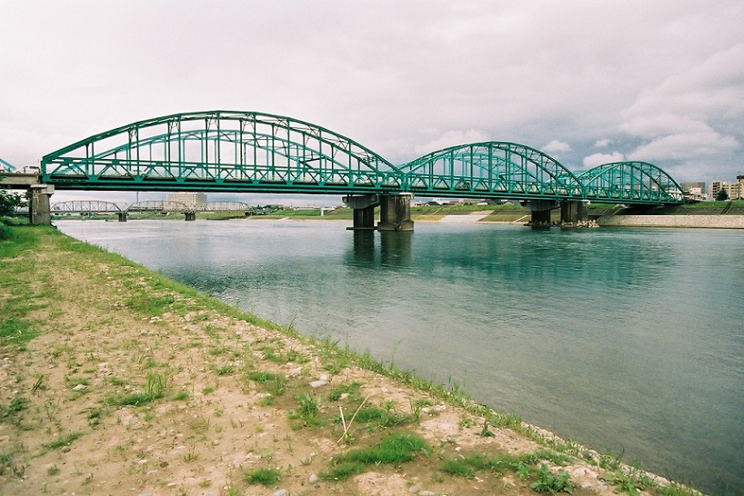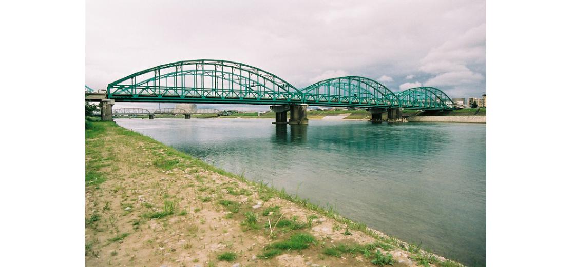 - (1)1969年に下流側に平行して新橋を架設(橋長425.9m,幅員11.2m,下路ランガー+PC単純桁)