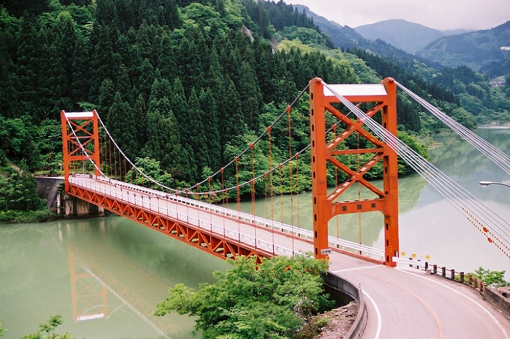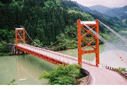 - (1)国道に架かる現存最古の吊橋.