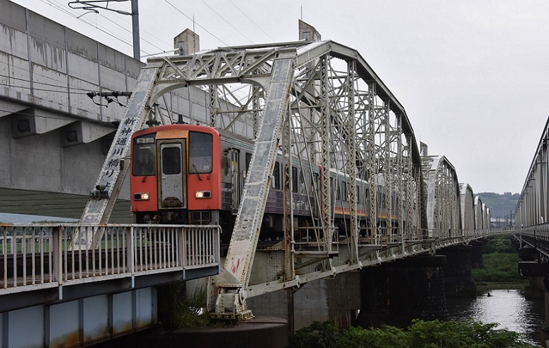 - (2)北陸本線用の複線型新橋梁が開通した後,高山本線用に原位置でそのまま転用された.