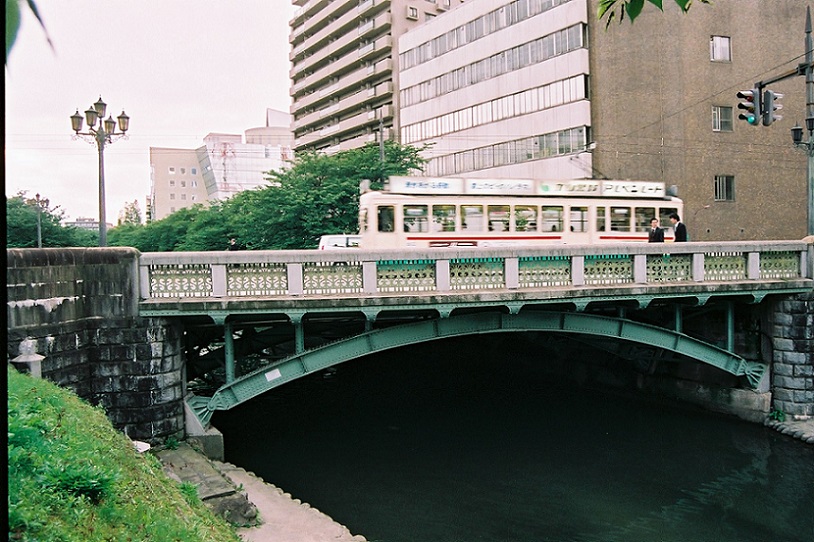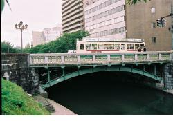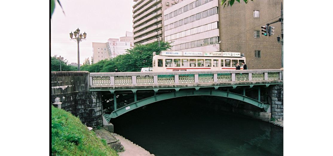 - (2)橋面には片側1車線+歩道+中央に富山地鉄の複線軌道を有する.