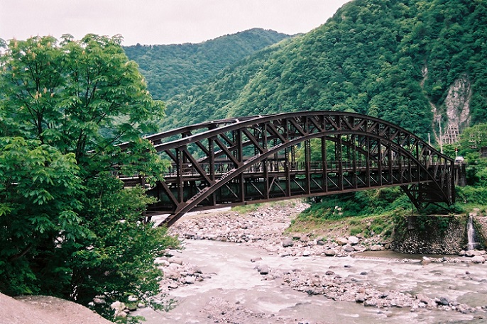 - (1)称名川の水を小見発電所へ送る水路が常願寺川を渡るための水路橋.