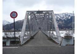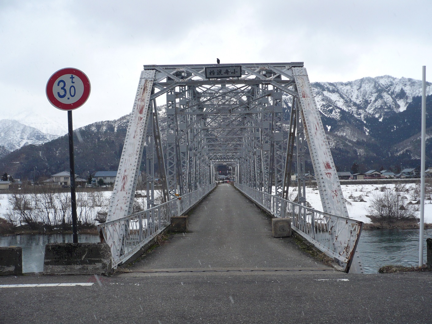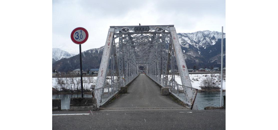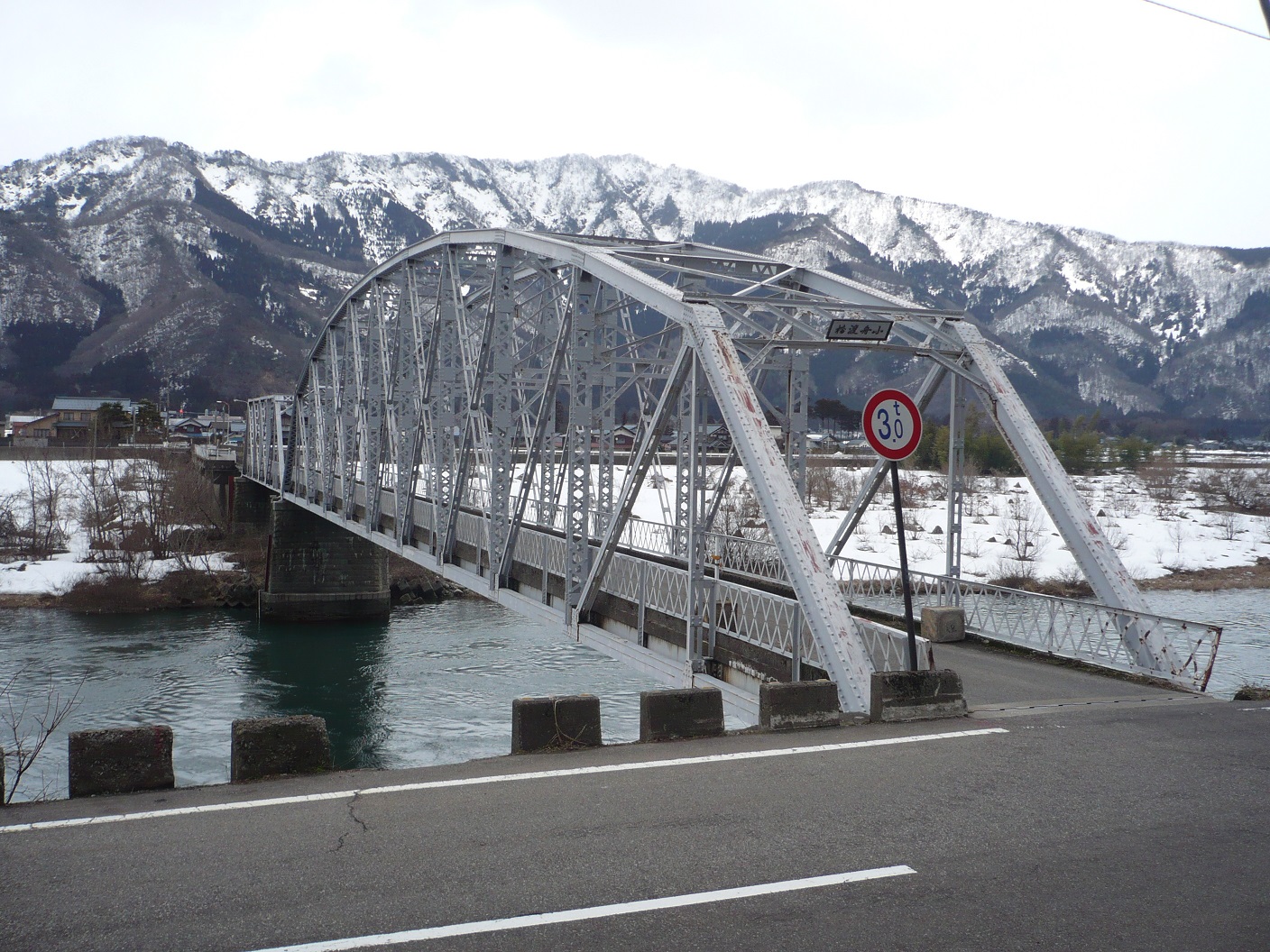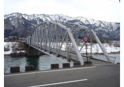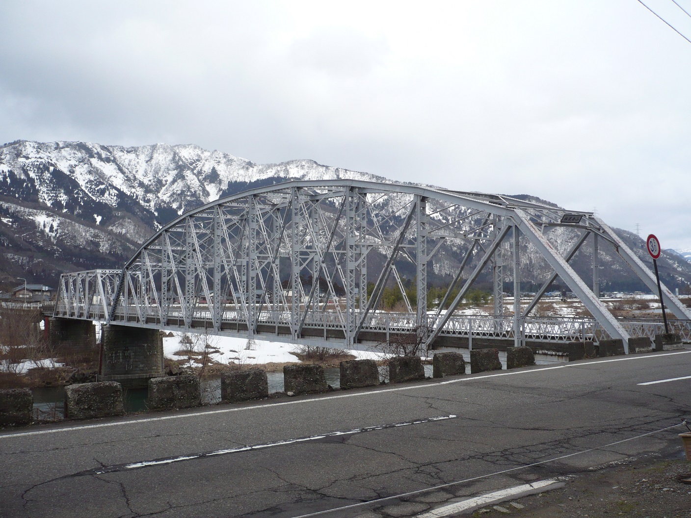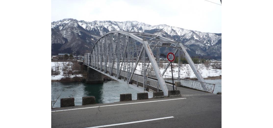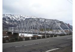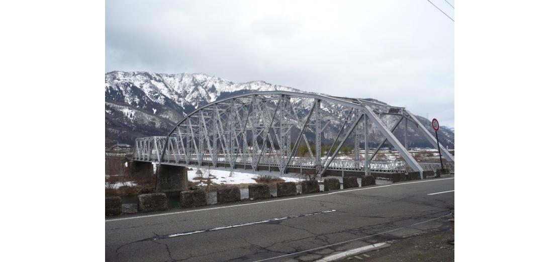 - (1)河川部には下路曲弦プラットトラスの他,下路ワーレントラス,高水敷には鈑桁が架かる。