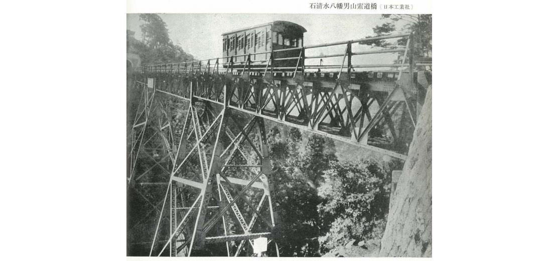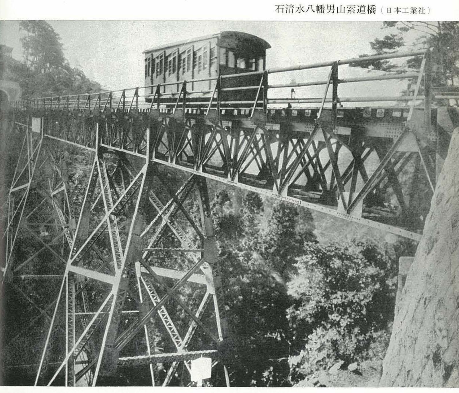 - (1)1926年(T15)に男山索道により開業,1944年(S19)太平洋戦争激化で企業整備の対象となり営業廃止,金属回収のため撤去された.