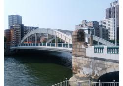 - (3)2019年長寿命化対策実施。健全なアーチや橋台を残しつつ,RC床版と床組を鋼床版に取替え,桁下空間を確保して船運の改善。支承沈下をジャッキアップして元に戻す。腐食部材の一部取替が実施された.